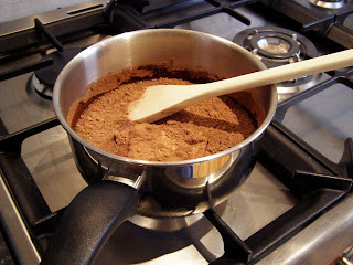 A chance to bake a cake using real Cacao. Yep, I've never used real Cacao before. After this I don't think I'll use anything but Dutch-processed Cacao from now on.